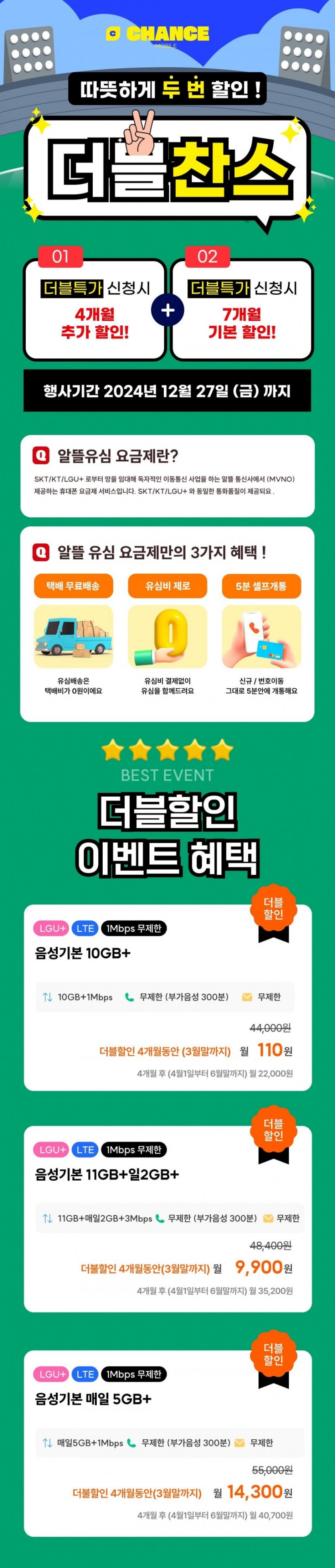 찬스모바일 초특가 작성자 정보 관리자 작성 작성일 2024.12.23 19:53 컨텐츠 정보 830 조회 0 추천 0 비추천 목록 본문 찬스모바일쉽고 빠른 개통, 통신비 절감의 찬스!https://chancemobile.co.kr/view/distributor/phone_plan_distributor.aspx?poscd=bcd188635790aefcd14ba77b3f85b1c0 알뜰폰 10GB+1MPS 3월30일까지 100원알뜰폰 11G+2GB+3MBPS 3월30일까지 9900원 . 100기가+5mps . 14000원 . 3월까지쓰고 4월에 번호이동 하심 될거 같네요.그리고 테더링 필요하신분은 엘지 특성상 E심 섞어서 하는 것도 추천 드립니다. E심 개통도 가능하다고합니다.#viral#fyp#tiktok#comedy 0 추천 0 비추천 SNS 공유 관련자료 링크 https://chancemobile.co.kr/view/distributor/phone_plan_distributor.aspx?poscd=bcd188635790aefcd14ba77b3f85b1c0 447 회 연결 이전 리쏘 영원씨 안마의자 작성일 2025.02.08 21:35 다음 “나야, 흑백요리사” 출연진들의 식당 리스트 총정리! 작성일 2024.10.11 16:23 댓글 0 등록된 댓글이 없습니다. 로그인한 회원만 댓글 등록이 가능합니다. 목록