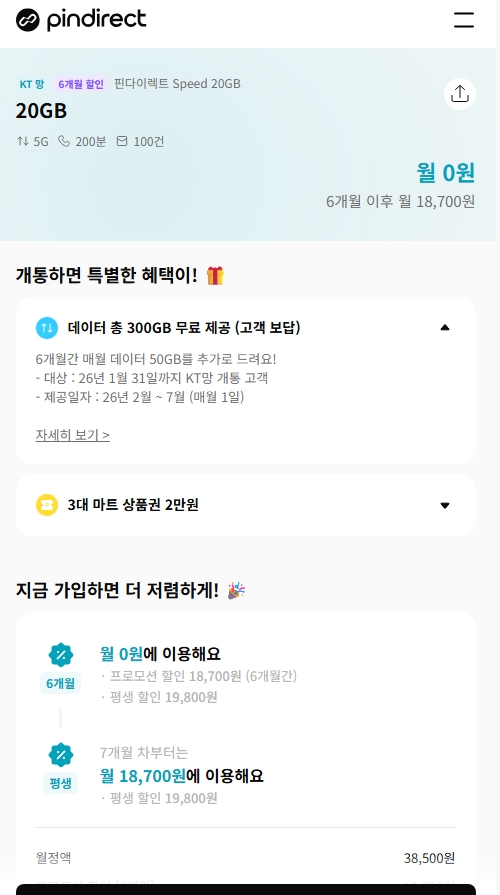 핀다이렉트SK망 120기가+5MPS 1100원, 11기가+2기가+3MPS 550원 KT망 20기가+50기가 0원 알뜰폰/뽐뿌 작성자 정보 관리자 쪽지보내기 메일보내기 자기소개 아이디로 검색 전체게시물 쪽지보내기 메일보내기 자기소개 아이디로 검색 전체게시물 작성 작성일 2026.01.16 19:09 컨텐츠 정보 385 조회 0 추천 0 비추천 목록 본문 무한 통신의 시작 Zhttps://www.yogeum.com/stkt341 0 추천 0 비추천 SNS 공유 관련자료 링크 https://www.yogeum.com/stkt341 71 회 연결 이전 핀다이렉트KT 20기가(2월~6개월간 50기가제공) + 바로유심 2만원 상품권 110원 총 70기가 작성일 2026.01.24 00:19 다음 알뜰폰) SK 알뜰망 100기가 5MPS 3300원 , 11기가+2GB+3MPS 2200원 작성일 2026.01.05 22:00 댓글 0 등록된 댓글이 없습니다. 로그인한 회원만 댓글 등록이 가능합니다. 목록